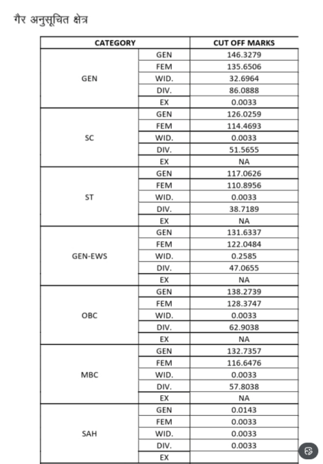 कट-ऑफ अंकों की जानकारी अलग से जारी की जा सकती है। अनुमानित कट-ऑफ इस प्रकार हो सकती है: